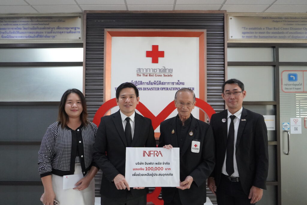 เมื่อวันที่ 4 ธันวาคม 2568 iNFRA ได้ร่วม บริจาคเงินช่วยเหลือผ่านสภากาชาดไทย เพื่อสนับสนุนภารกิจ บรรเทาทุกข์ การช่วยเหลือผู้ประสบภัย และการฟื้นฟูพื้นที่ที่ได้รับความเสียหายจากน้ำท่วม ในหลายจังหวัดของภาคใต้