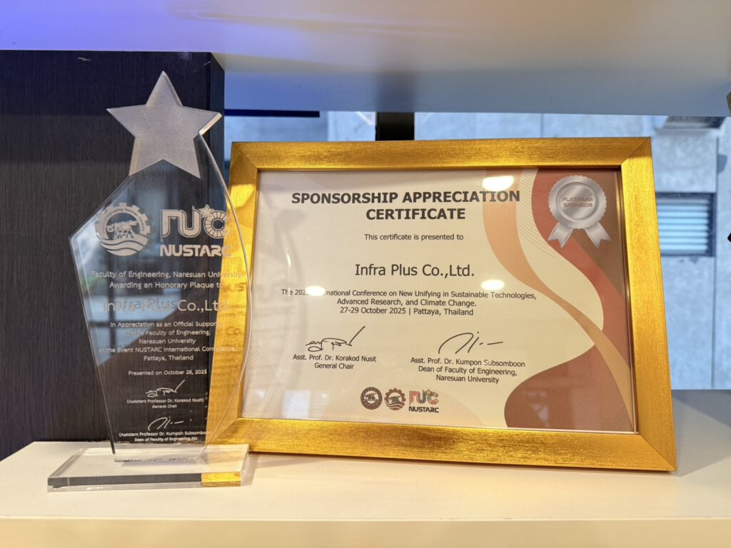 ในการนี้ iNFRA ได้รับมอบ โล่และเกียรติบัตรผู้สนับสนุนระดับ Platinum Sponsor เพื่อแสดงความขอบคุณต่อการสนับสนุนการจัดงานประชุมวิชาการระดับนานาชาติ และตอกย้ำบทบาทขององค์กรในการมีส่วนร่วมผลักดันองค์ความรู้ เทคโนโลยี และความร่วมมือทางวิชาการอย่างต่อเนื่อง